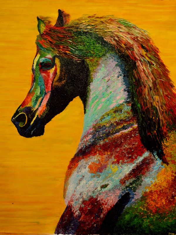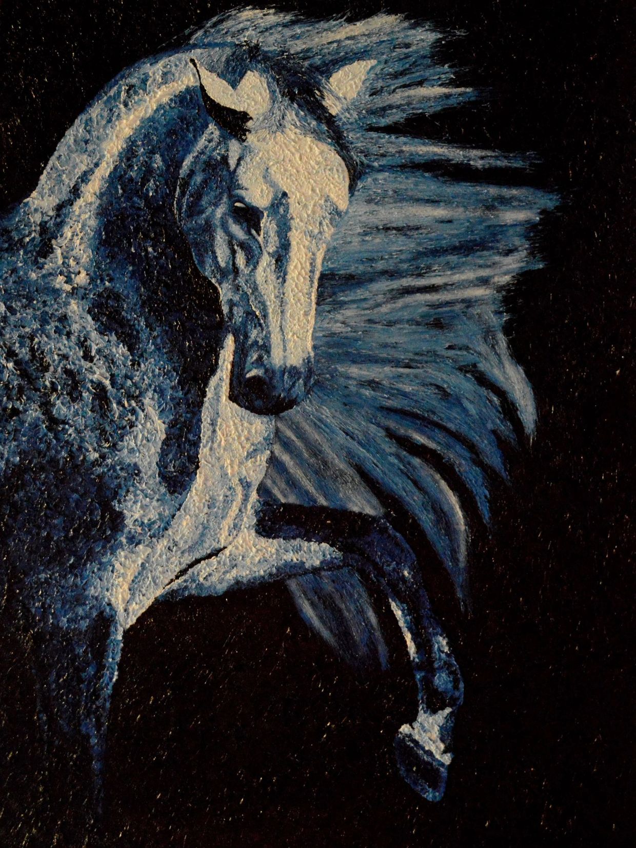 Horse at Night V is part of a collection of horses that I have developed for a few seasons ago, always the vitality, power, expression, and meaning of horses have attracted me a lot and I paint them since my beginnings in art.