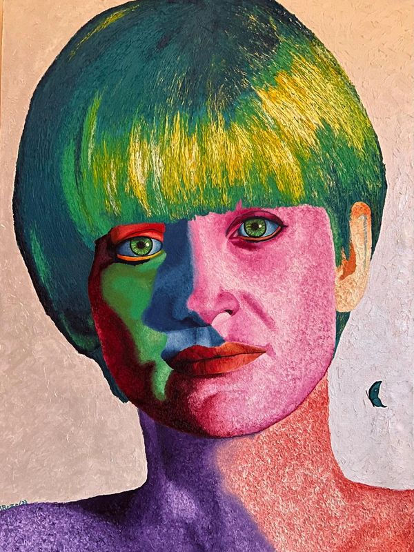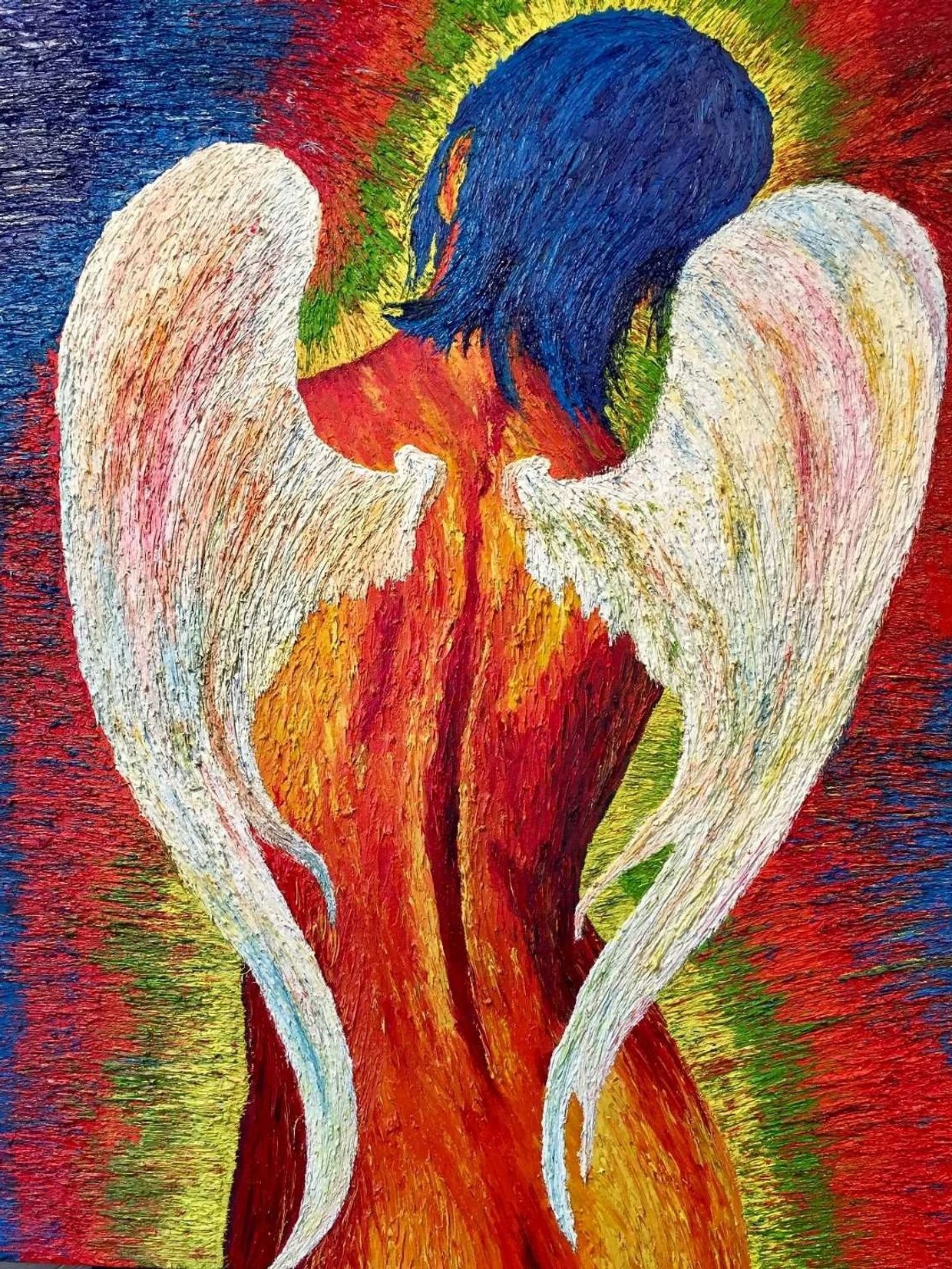 This painting is about an angel passing through my life. I was very happy to paint it. I sincerely hope that when you concentrate on your face your eyes fill you with peace and love, which is what I wanted to project when painting this work.